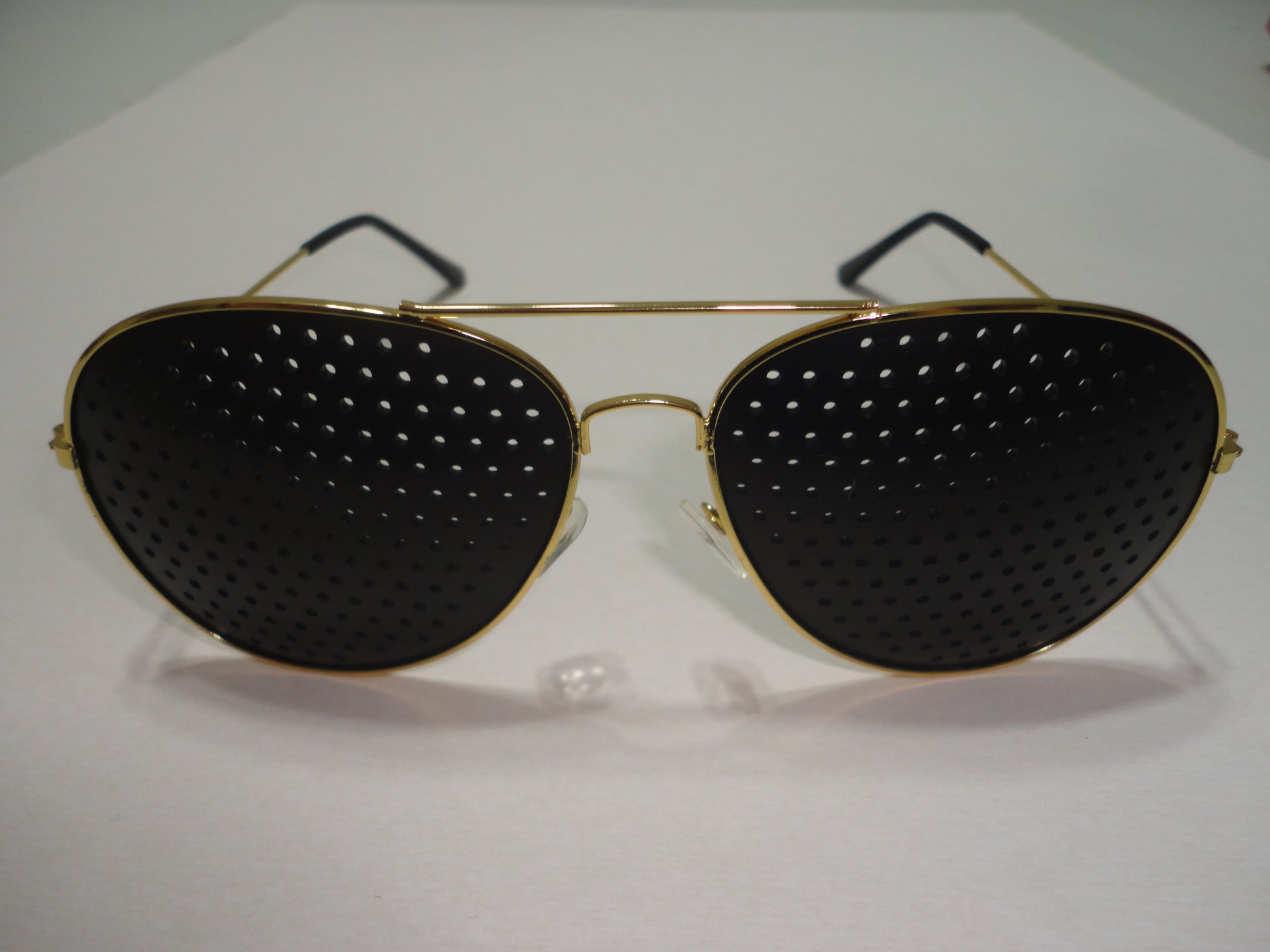 Gafas reticulares metálicas con agujeros redondos. Te permiten disfrutar del efecto a diferentes alturas. Apto para todos los síntomas entre 0 y 5 dioptrías.
