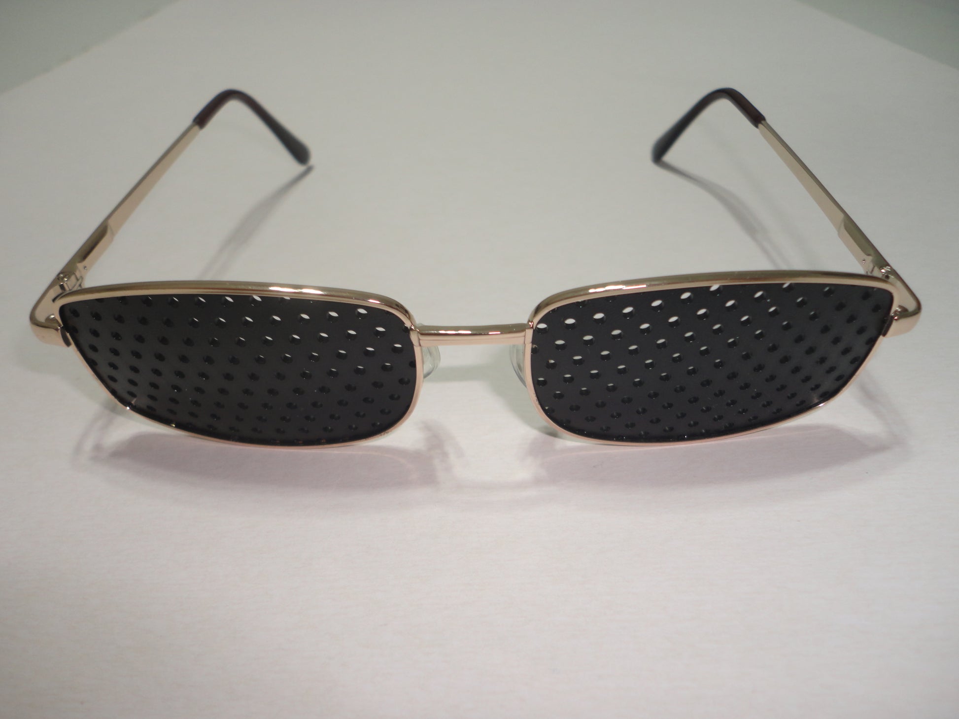 Gafas reticulares metálicas con agujeros redondos. Son un poco menos anchas que otras gafas de metal. Apto para todos los síntomas entre 0 y 4 dioptrías.